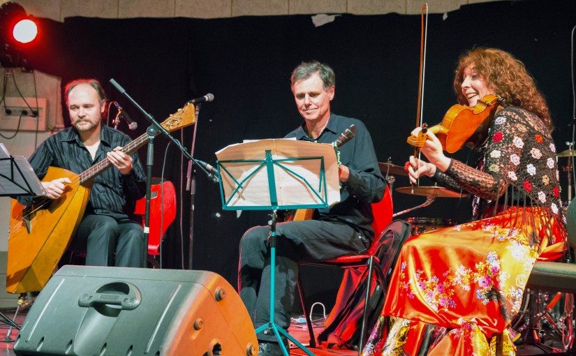 Tricord’ rassemble trois instruments à trois cordes, et le violon qui en compte quatre. 10 en tout pour parcourir de vastes territoires, selon les répertoires apportés par chaque membre du groupe et inspirés par les sonorités d’instruments traditionnels qui, pour certains, n’ont pas pour habitude de se mélanger. Balalaïka prima et balalaïka basse sont nées en Russie, où elles ont traversé siècles et milieux sociaux pour atteindre un raffinement musical prisé des compositeurs. Le saz turc, capable à lui seul d’engendrer mélodie, harmonie et rythme, prête son timbre rond et son support de percussion à l’ensemble. Seul de sa catégorie, puisque sans frettes mais avec archet, le violon est tour à tour soliste ou accompagnateur.