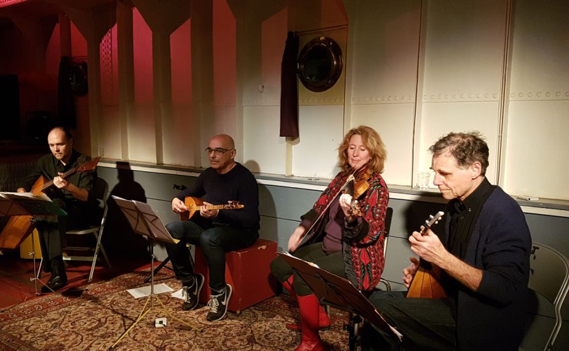 Trois instruments à trois cordes, et le violon qui en compte quatre, se mêlent pour faire résonner un répertoire varié d’Europe de l’est et Balkanique, rayonnant aussi plus loin à l’est et à l’ouest, jusqu’au-delà de l’océan. La balalaïka prima et la balalaïka basse, nées dans les campagnes russes, ont traversé les siècles et gagné une subtilité musicale qui fait le bonheur des compositeurs. Le saz fait entendre aussi bien mélodie qu’harmonies et permet un soutien de percussion. A la différence des trois autres, le violon n’a pas de frettes, et s’adjoint un archet qui permet d’apporter du liant aux arrangements que le groupe élabore et retouche au gré de son inspiration.